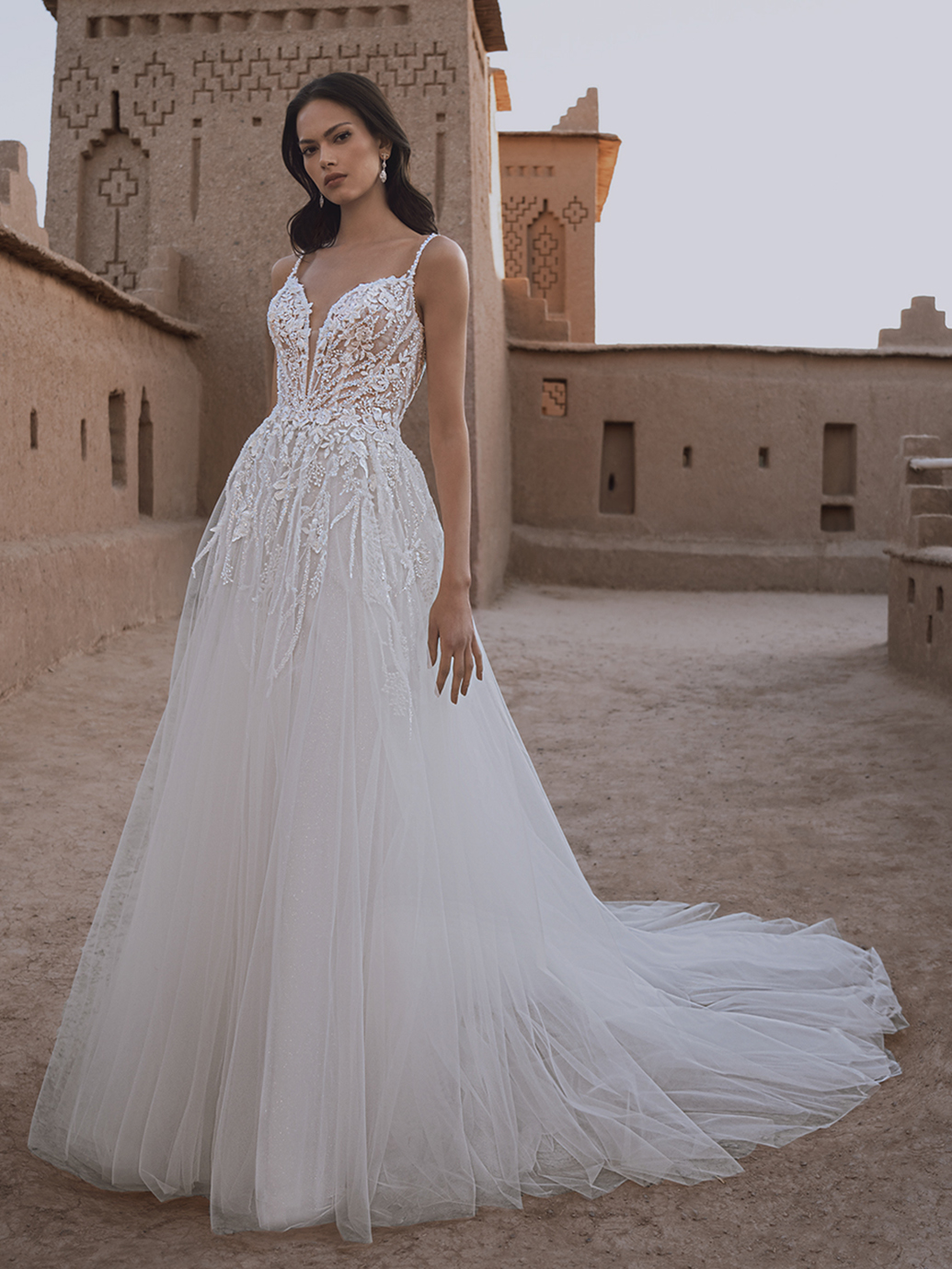 Die A‐Linie gehört zu den klassichen Brautkleidformen und passt nahezu zu jedem Figurtyp.